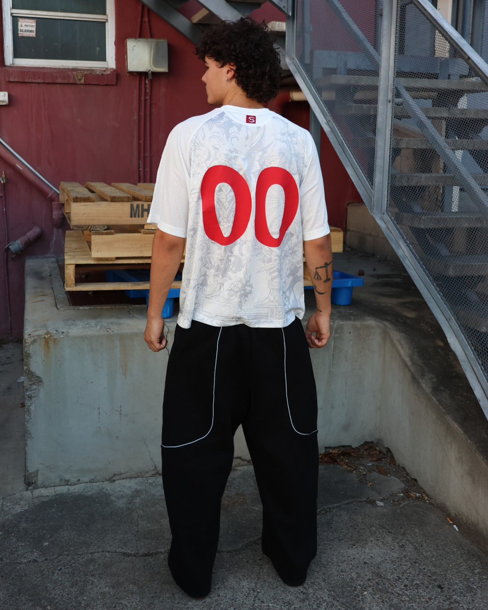 MODEL IS 6'2 WEARING SIZE L JERSEY.